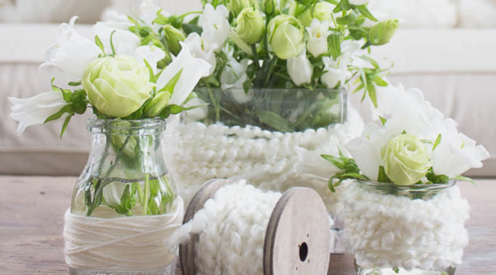 Yün iplerle vazolarınızı süsleyin.